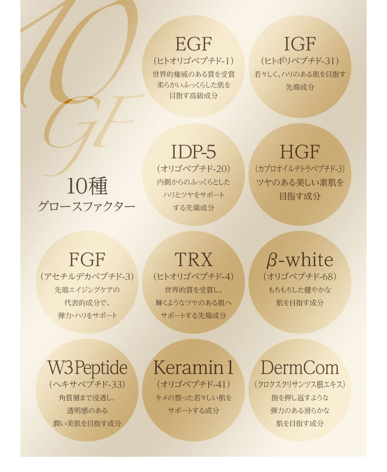 •豪華10種グロースファクター!人気の美肌自慢がパワーUP!