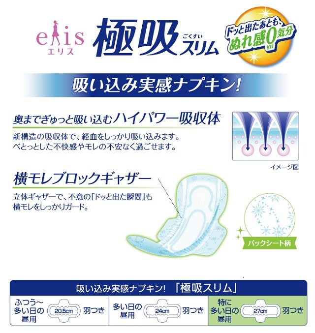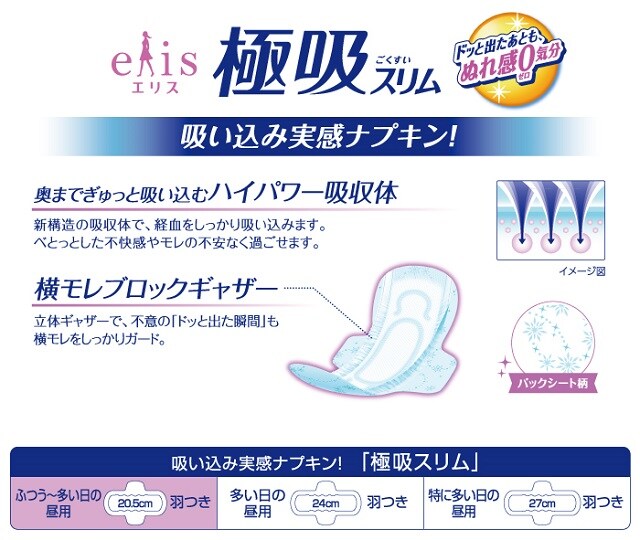 エリスウルトラガード極吸は、多い日でも横モレ安心。
