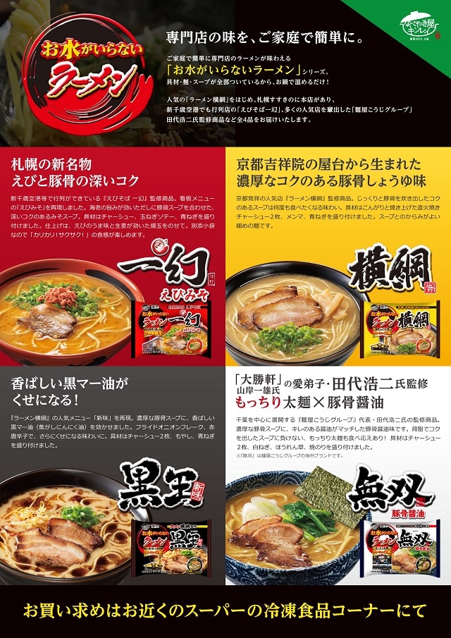 【お水が入らないラーメン4種】