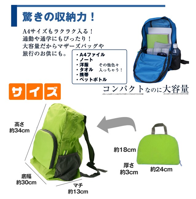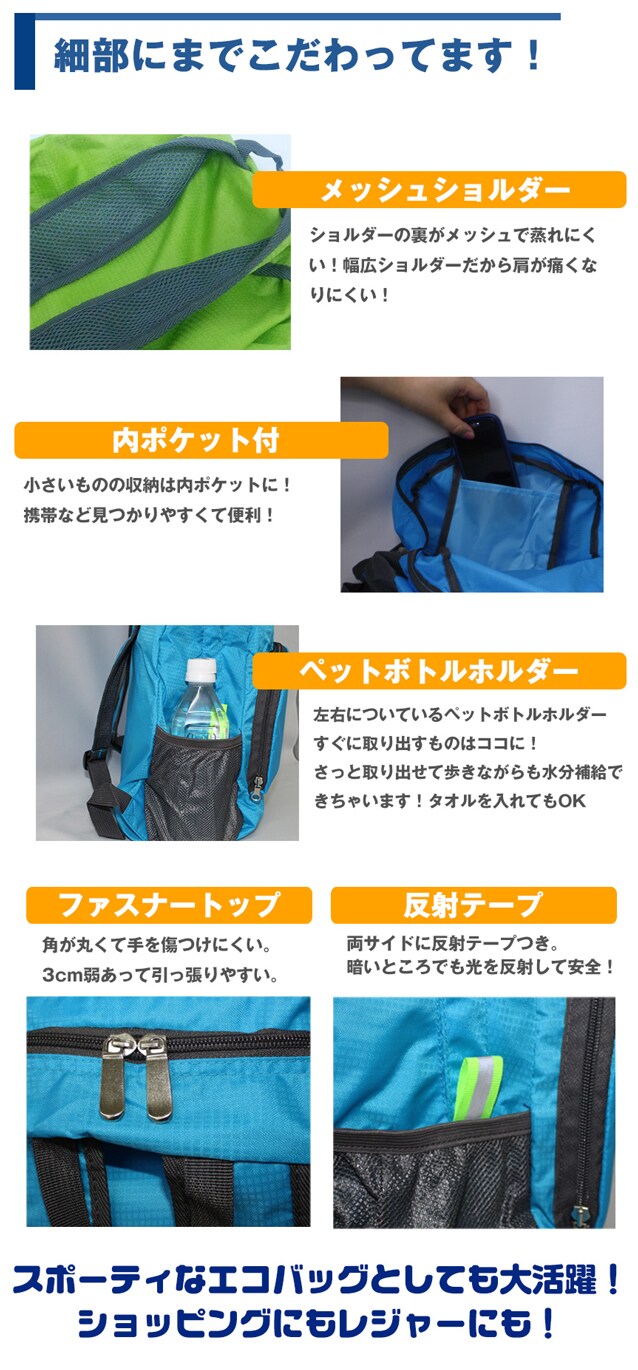 旅行先で手軽に持ち運べるバックが欲しい。でも、バックを持って行くと荷物がかさばっちゃう。そんな悩みを解決してくれる、折りたたみ式超軽量リュック式エコバッグ。