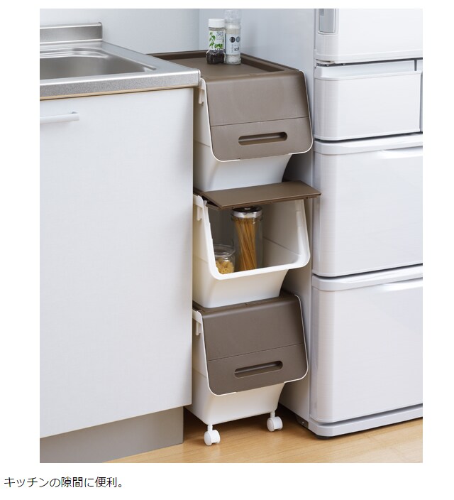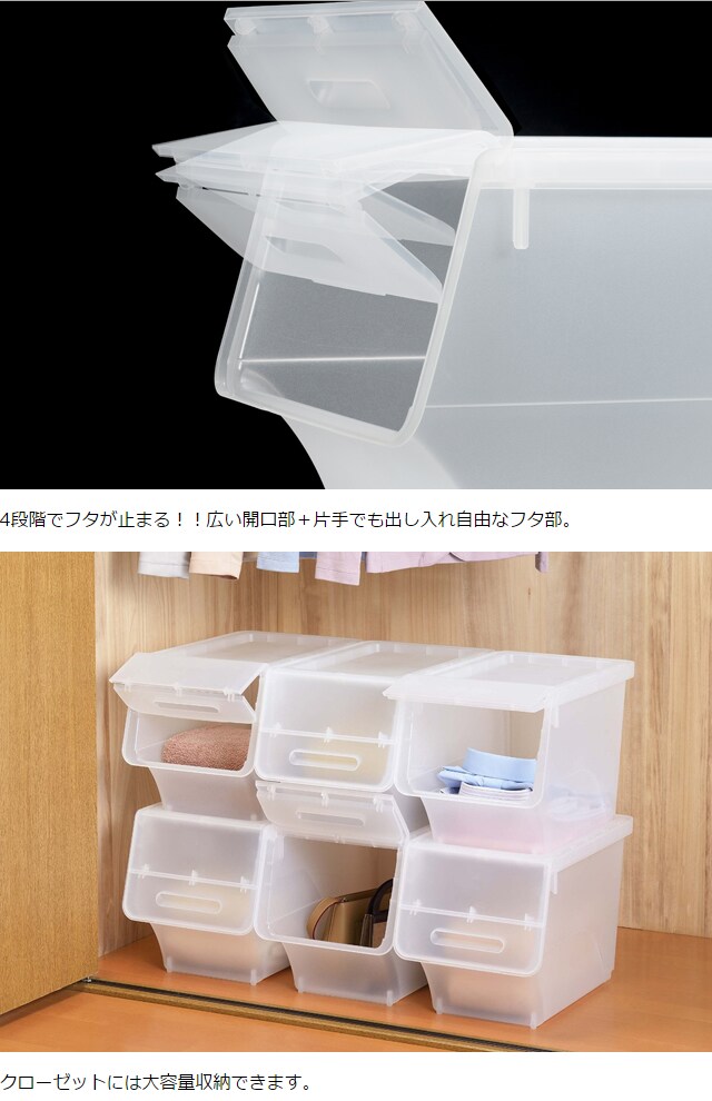フタが止まって出し入れ自由。広い開口部で出し入れしやすい。
