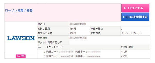 (お申込みいただいた「ローソンお買い物券」を表示して、発券コード・発券キー、使用期限、申込み個数等をご確認ください。)
