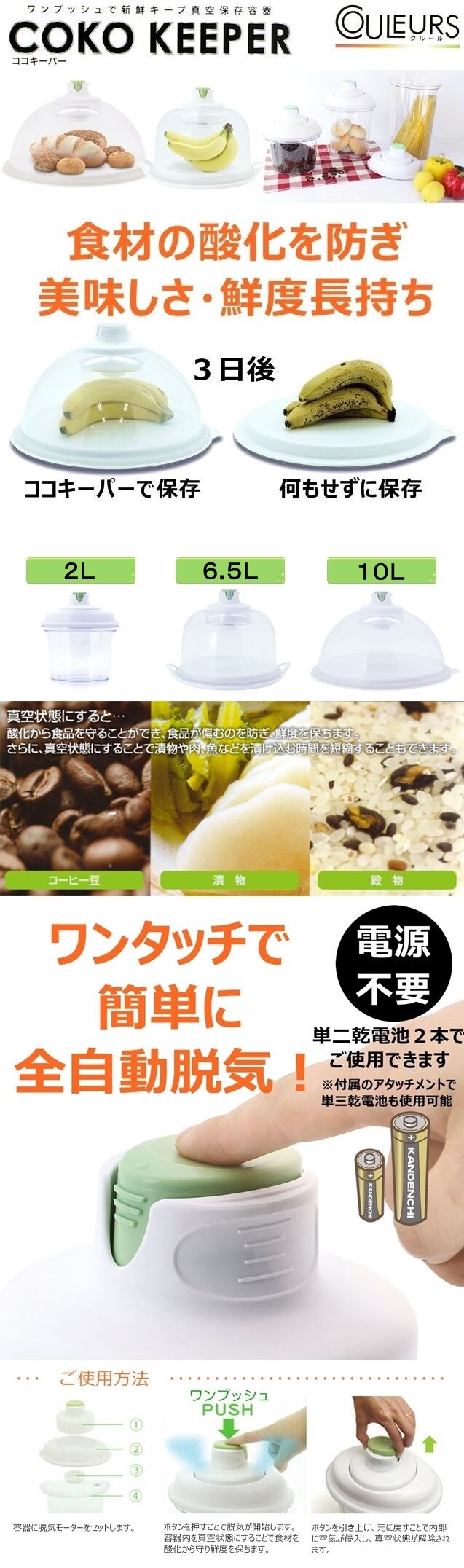 - 【ドーム6.5L】Culeurs ココキーパー 真空保存容器