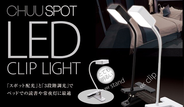 「はさむ」、「置く」の2WAYスタイルで設置できるスポット型LEDクリップライト“CHUU”。