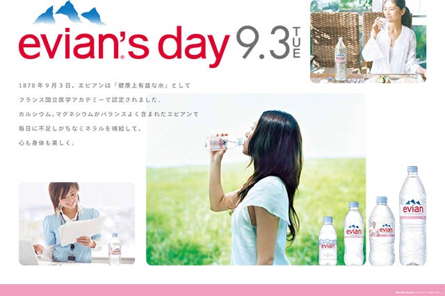 健康的な毎日の生活に、ミネラルグッドバランスのおいしいエビアンをおすすめします。