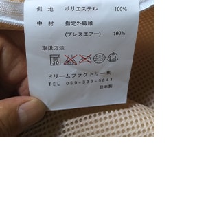 原材料 : 中芯:ブレスエアー100% メッシュカバー:ポリエステル100%