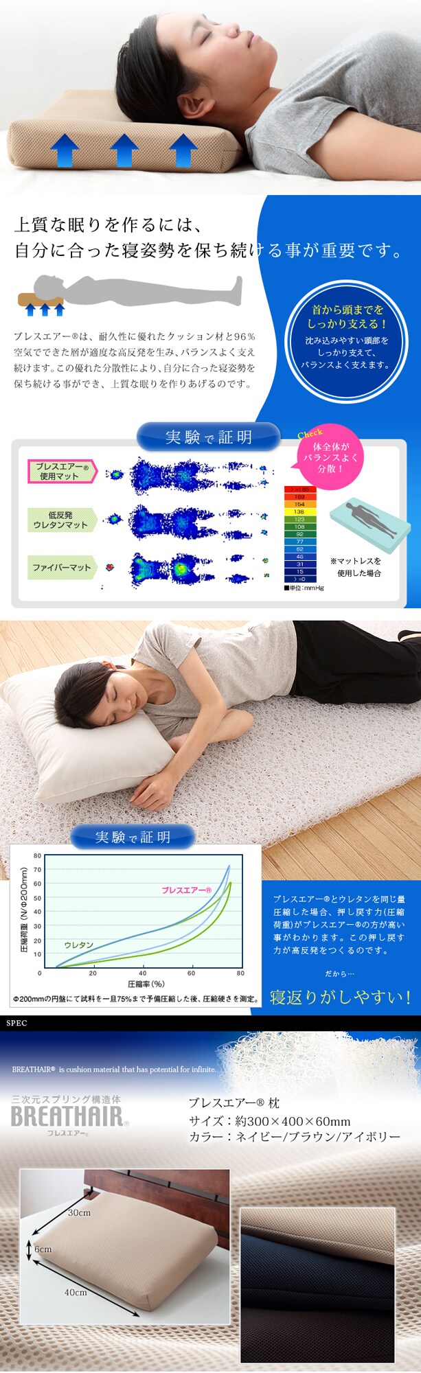 - 【ブラウン】東洋紡/日本製 ブレスエアー 枕/高さ60mm
