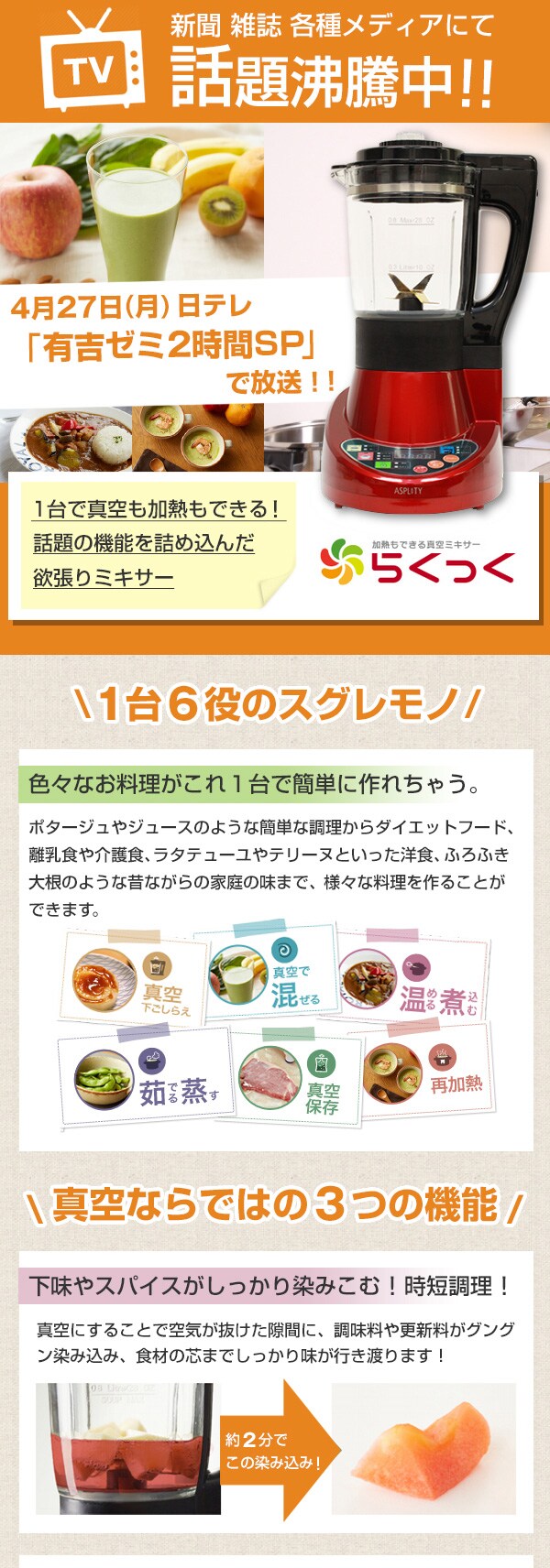 1台6役のスグレモノ。加熱もできる真空ミキサー らくっく