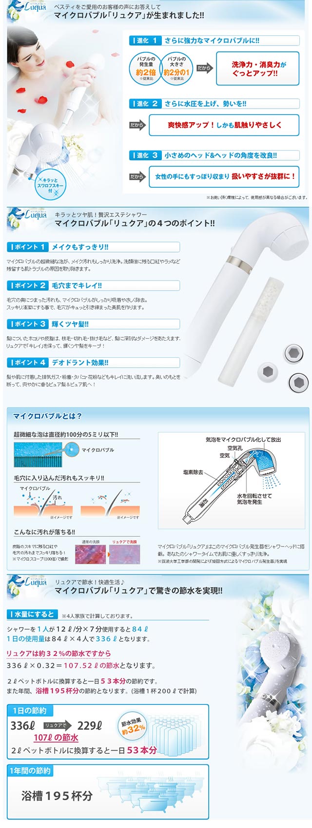 【マイクロバブルシャワーヘッド リュクア】微細な泡で汚れすっきり&湯冷めしにくい。節水効果で水道代の節約にも
