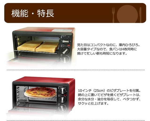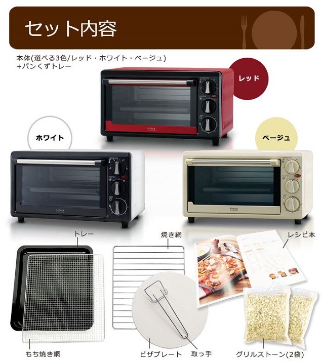 【セット内容】本体・トレー・パンくずトレー・焼き網・ピザプレート・受け皿取っ手・取扱説明書(保証書)