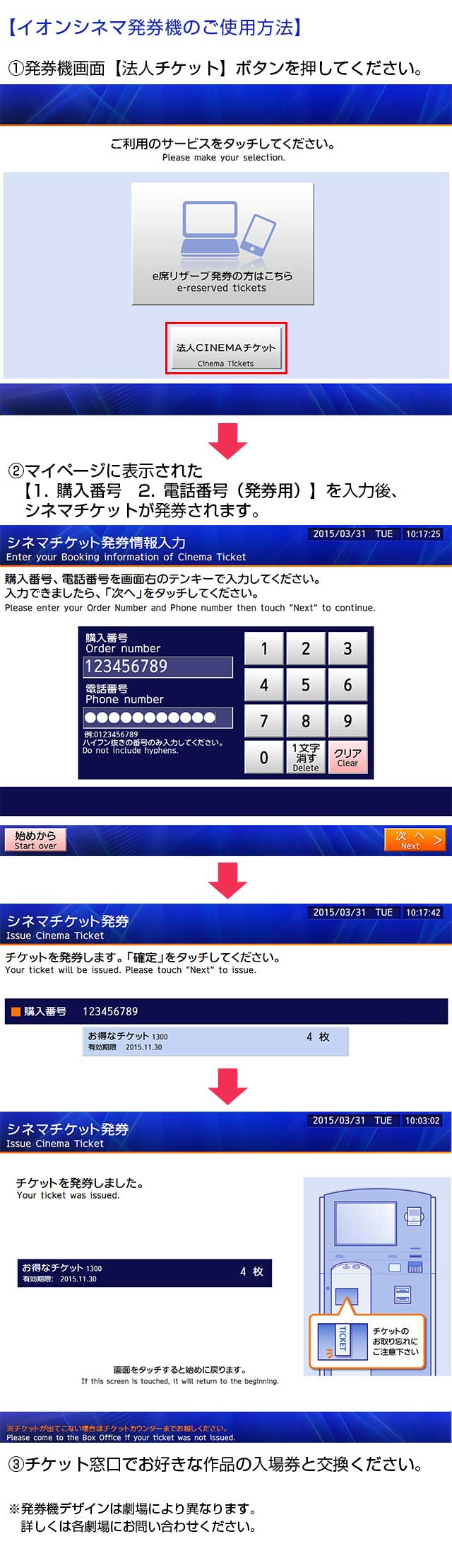 2)各劇場ロビーの発券機でシネマチケットをお受取りください(10月1日より発券可能です)