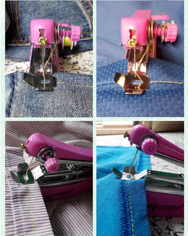 縫いたい箇所を、ホッチキスのように、カチカチと手軽に縫える、ハンディタイプのミシンです。