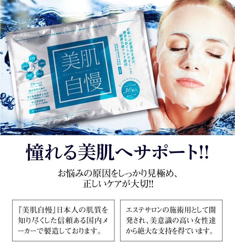 美肌自慢 30枚(美容液:300mL) | 高級エステ仕様 たっぷり浸透&潤う至福のひととき!世界的賞受賞の先端美容成分で若々しい美肌を実感♪