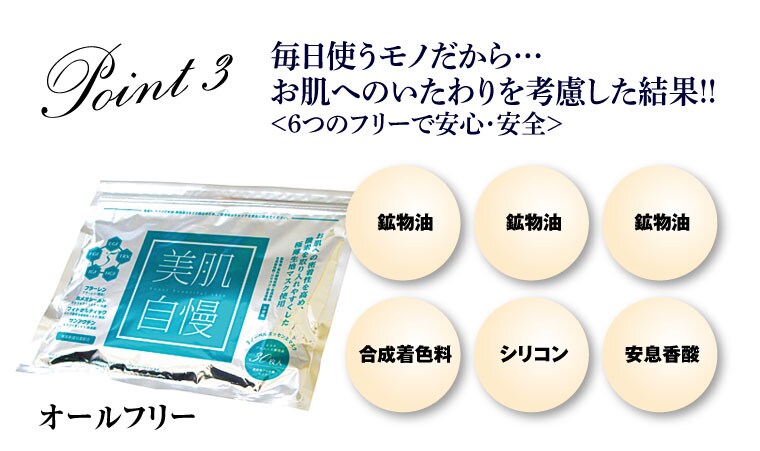 ◎合成着色料・香料・シリコン・鉱物油などすべてフリー