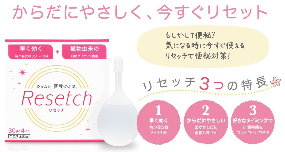 そんなあなたのための飲まない便秘のお薬「Resetch」(リセッチ)