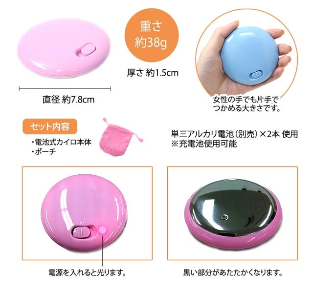 - 【ブルー・ピンク】電池式カイロ 4個(各色2個ずつ)