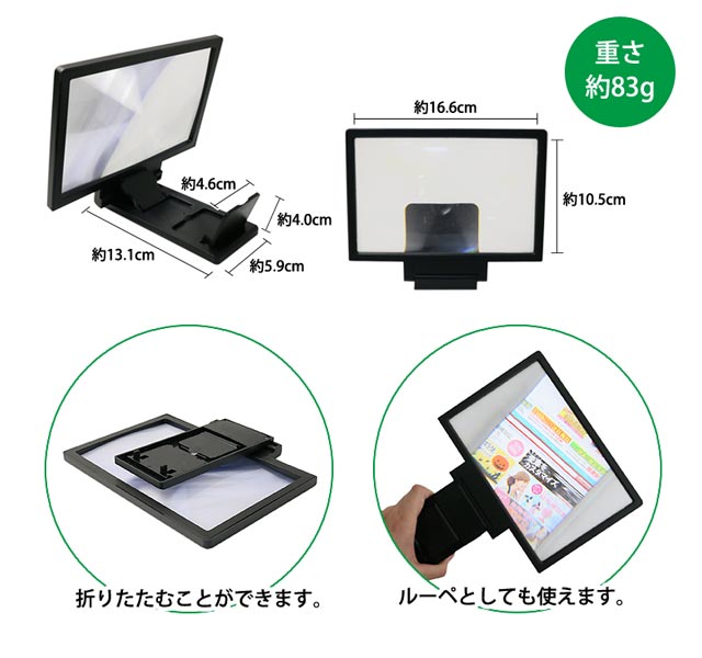 [ホワイト]【スマホ大画面化スタンド 拡大鏡】iPhoneやスマホを置くだけで大画面化 画像や動画が細かい部分まではっきり見えないという方に便利