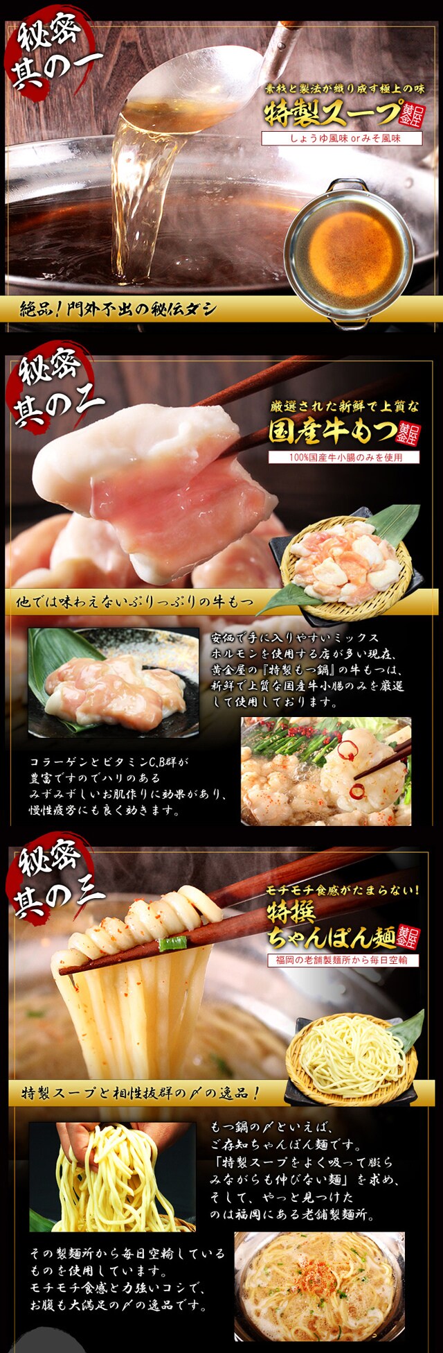 もつ鍋セット:http://item.rakuten.co.jp/motunabe/1352607/