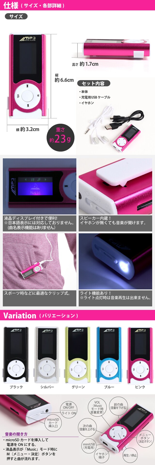 - 【ピンク】スピーカー内臓 充電式MP3プレーヤー