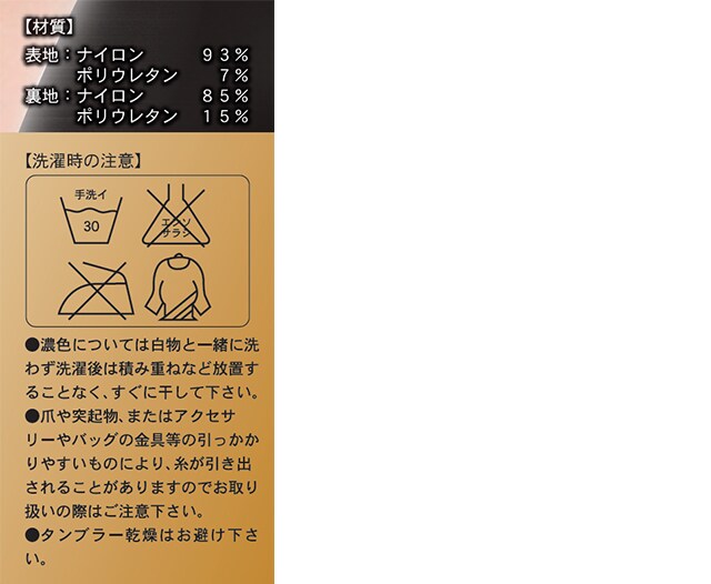 [表生地]ナイロン93%、ポリウレタン7% [裏生地]ナイロン85%・ポリウレタン15%