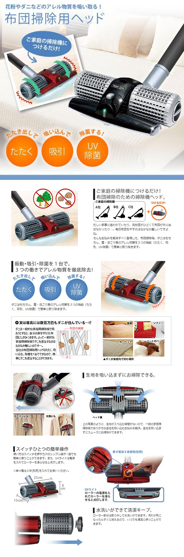 ご家庭の掃除機につけるだけ!布団掃除のための掃除機ヘッド。
