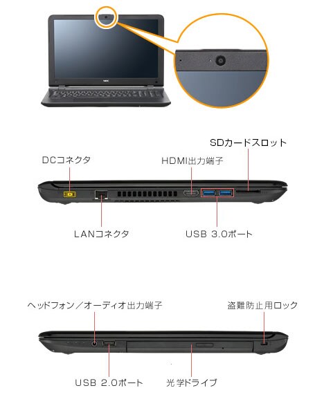 Webカメラ: あり HD解像度(720P)対応カメラ/有効画素数92万画素
