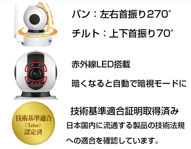 【KEIANパン・チルト対応 有線/無線LAN対応ネットワークカメラ】スマホ対応で離れた場所から子どもやペットを見守る。100万画素の高画質&暗視機能付き!