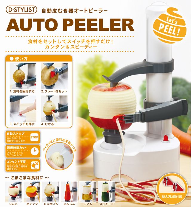 【自動皮むき器オートピーラー】食材をセットしてスイッチを押すだけ!カンタン&スピーディー