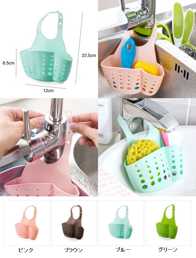 - 【カラーアソート2個セット】蛇口やフックに掛けるだけスポンジホルダー