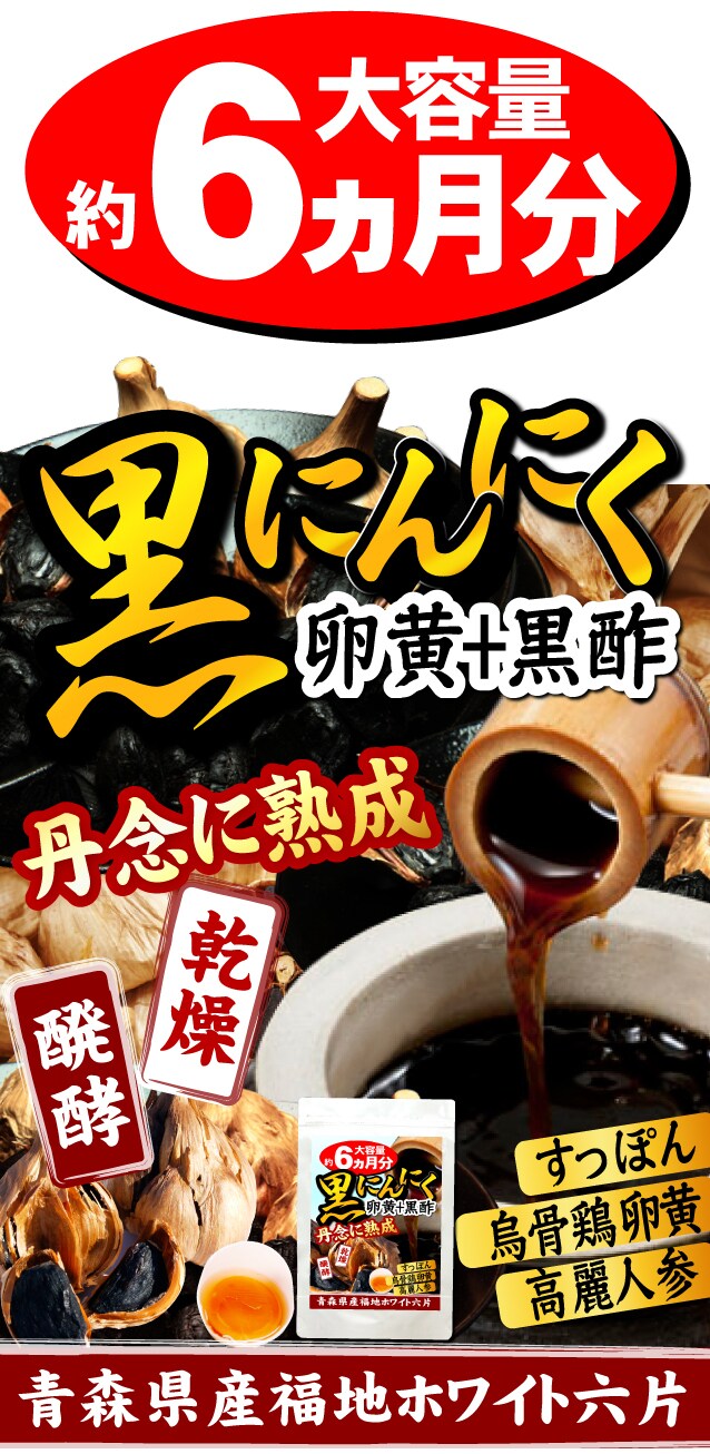 【丹念熟成・黒にんにく卵黄+黒酢/360粒】6ヶ月分/TVで話題素材!約1ヶ月換算267円♪