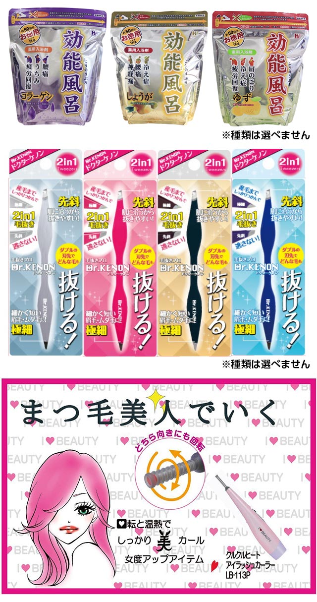 - 美容福袋7点セット【イオニック美顔スチーマー、プレミアム電子ローラー、クリンスイ浄水タンブラー、ヒートアイラッシュカーラー、ドクターケノン、ブラッシュピックス、効能風呂1kg】