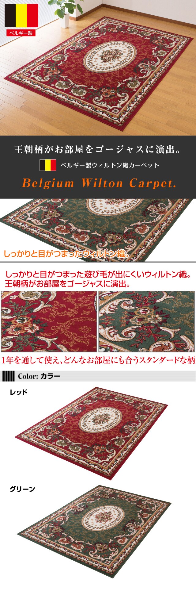 [グリーン/6畳用]【ベルギー製王朝柄ウィルトン織カーペット】王朝柄がお部屋をゴージャスに演出