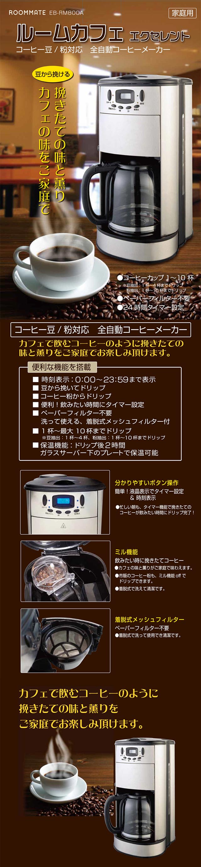 - ROOMMATE ルームカフェ エクセレント コーヒー豆/粉対応全自動コーヒーメーカー EB-RM800A