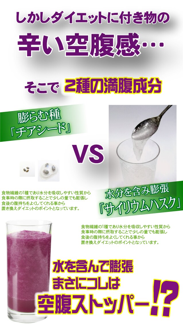 満腹素材で食感も楽しめちゃう。膨らむ種チアシードやサイリウムハスクを配合した