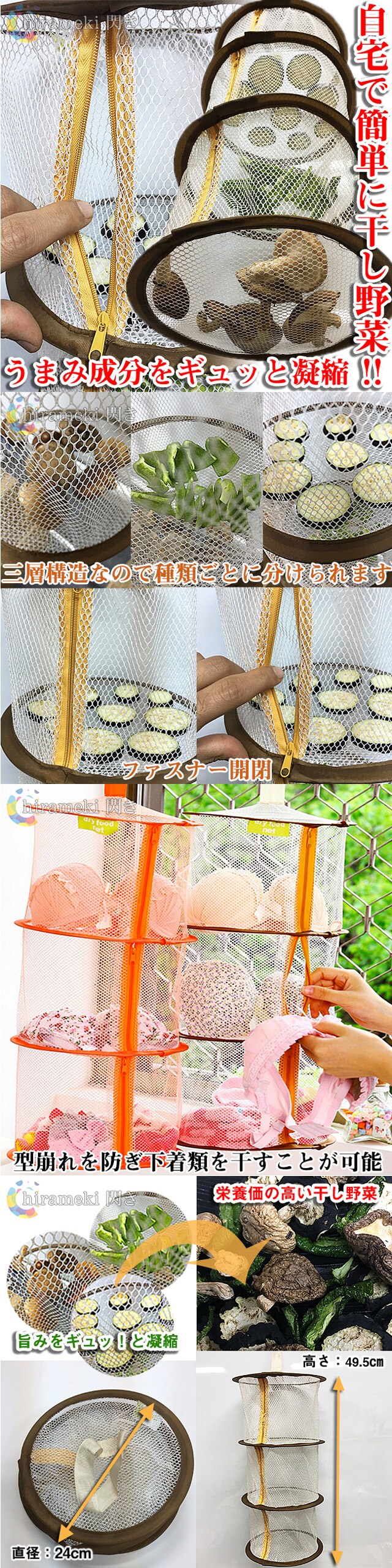 [オレンジ]【干しかごネット】自宅でカンタンに干し野菜♪下着干しにも便利!