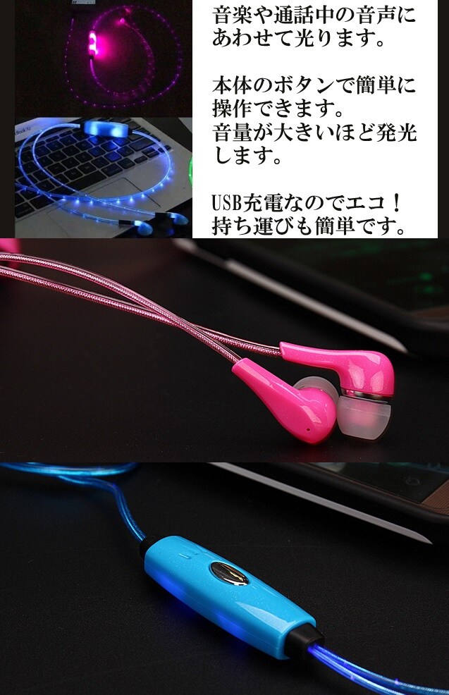 [ピンク]【光るイヤホンマイク】音に合わせて光る!