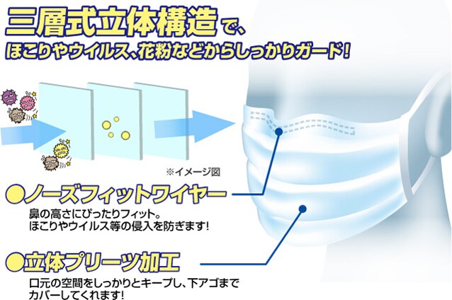 [Sサイズ]お徳用不織布マスク 50枚入り×8箱 | 花粉・風邪ウィルス対策に!非常時の備えにも!3層式立体プリーツ加工でしっかりガード!