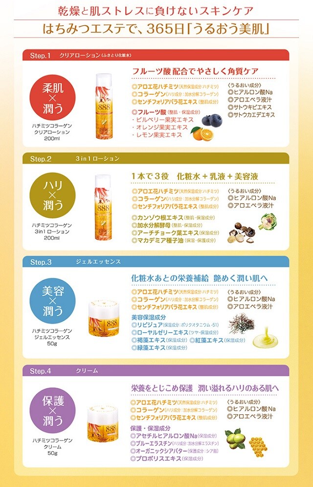 【ハチミツコラーゲン お試し4点セット/計8個】はちみつエステではじまる、365日「うるおう美肌」