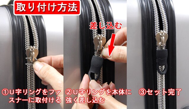 リングをスライダー部に引っ掛け、引き手とリングをセットするだけ!