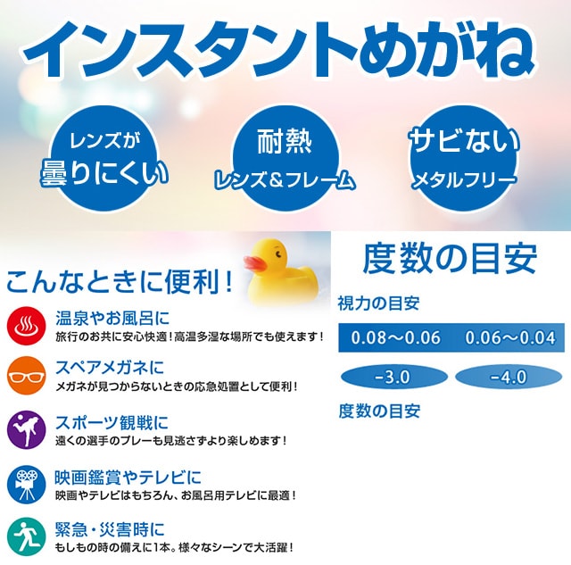 ■本商品は一時的な視力補正を目的に作られております。常時の使用、運転時、歩行時段差のある場所でのご使用はできません。