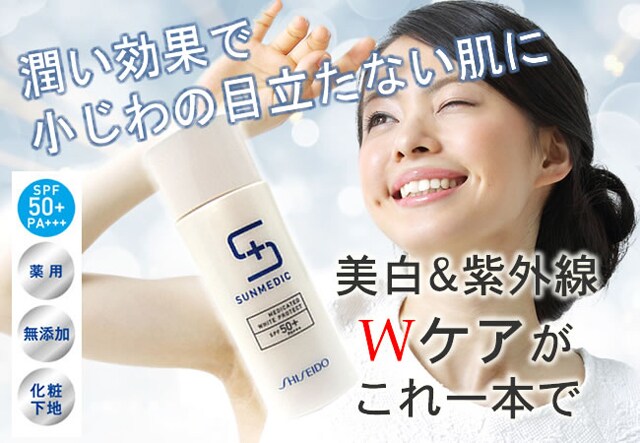【サンメディックUV薬用ホワイトプロテクトW】美白したいお肌に!うるおい効果で小じわの目立たない肌に 薬用美白スキンケア処方で強力紫外線をブロック!!