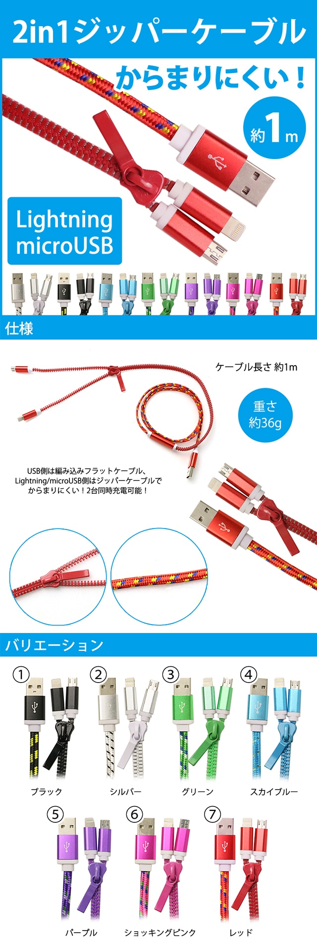 ★Lightningコネクタ1個・microUSBコネクタ1個が1本になった便利な充電ケーブル