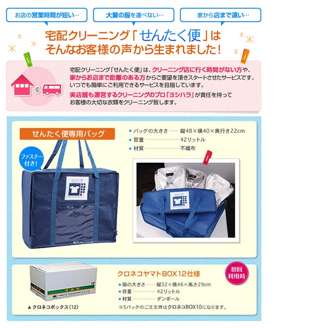 ※お預かりした衣類は、受付時のせんたく便専用バッグ単位でのご返却になります。