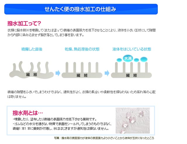衣類に汚れが付着する前にガードする「プレミアムコーティング」加工。