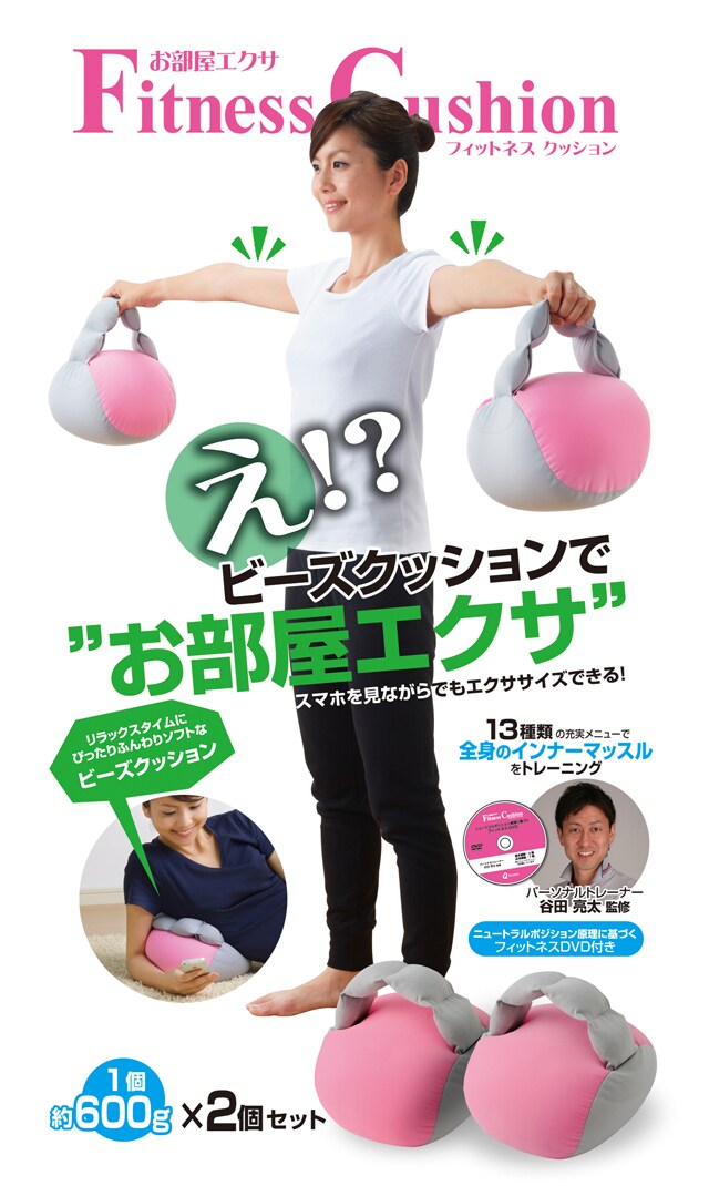 【フィットネスクッション 2個セット】ビーズクッションが入っているので触り心地もよく、リラックス時は通常のクッションとして使用したり、足枕としても使える