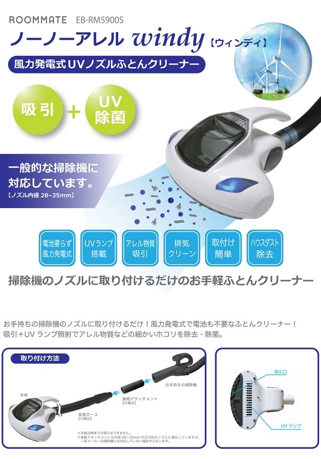 - ROOMMATE ノーノーアレル windy (風力発電式UV ノズルふとんクリーナー) EB-RM5900S