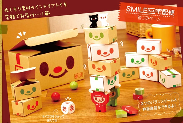 「スマイル宅配便 箱づみゲーム」と、可愛いミニチュア作りができる「プラチュア」3種のセットです。