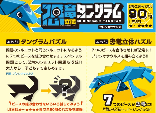 - 恐竜立体タングラム プレシオサウルス+チーズゲーム 知恵の輪+オノマトペ サウンドカルタ+ニコケーキゲーム ※パッケージ破損あり