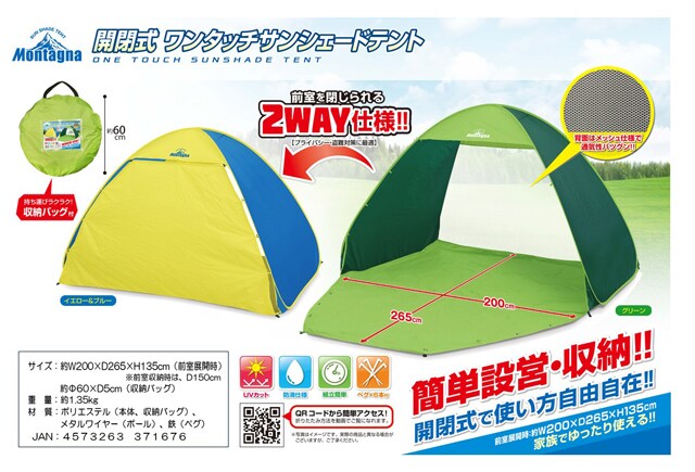 開閉式ワンタッチサンシェードテント | 海水浴やレジャーでの日よけに ※カラーランダム