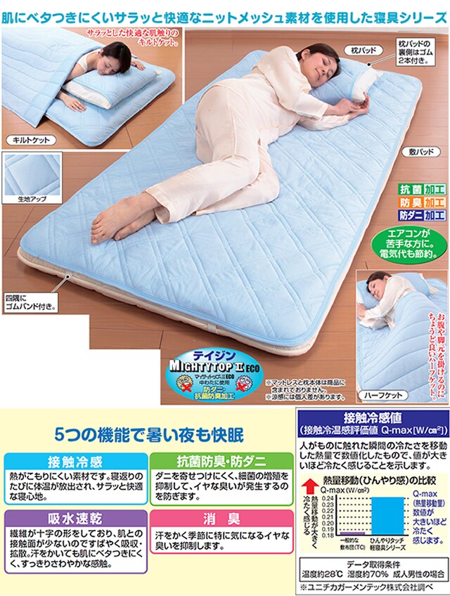 ひんやりタッチ軽寝具シリーズ 敷パッド | 肌にベタつきにくいサラッと快適なニットメッシュ素材を使用した寝具